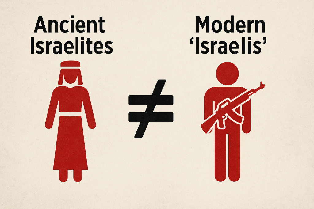 In short, calling today’s European immigrant population in Palestine ‘Israelites’ because they named their state ‘Israel’ makes as much sense as calling white colonists in South Africa ‘Zulus’ because they happen to live in Zululand. It’s a blatant propaganda trick.